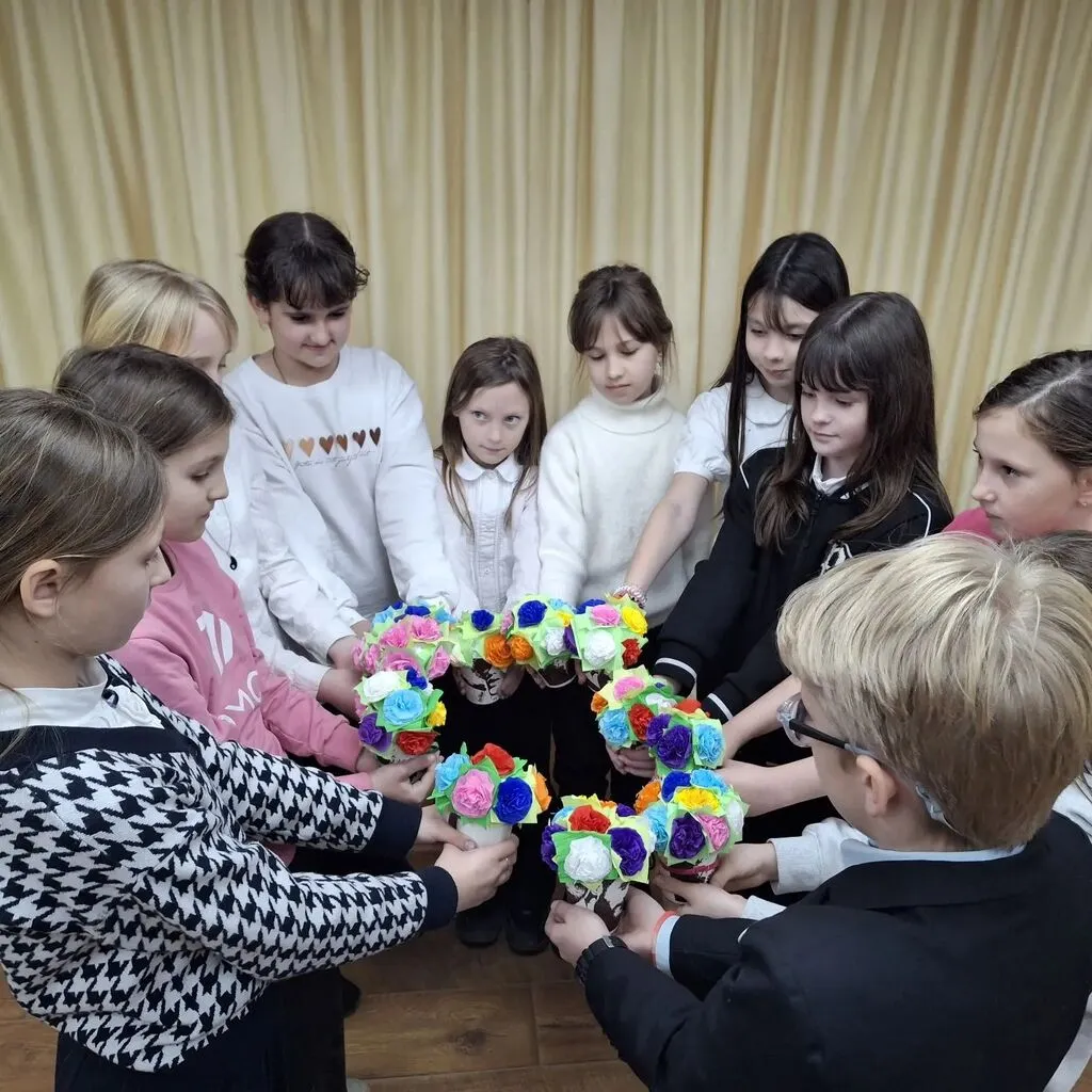 👫На мероприятие присутствовали участники КФ мастерской декаративно-прикладного творчества "Рукодельница". Мы создавали нежные подарки для любимых мам – корзинки с цветами из гофрированной бумаги.