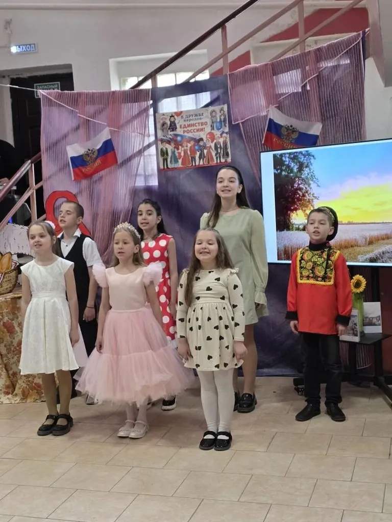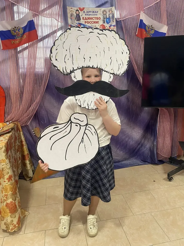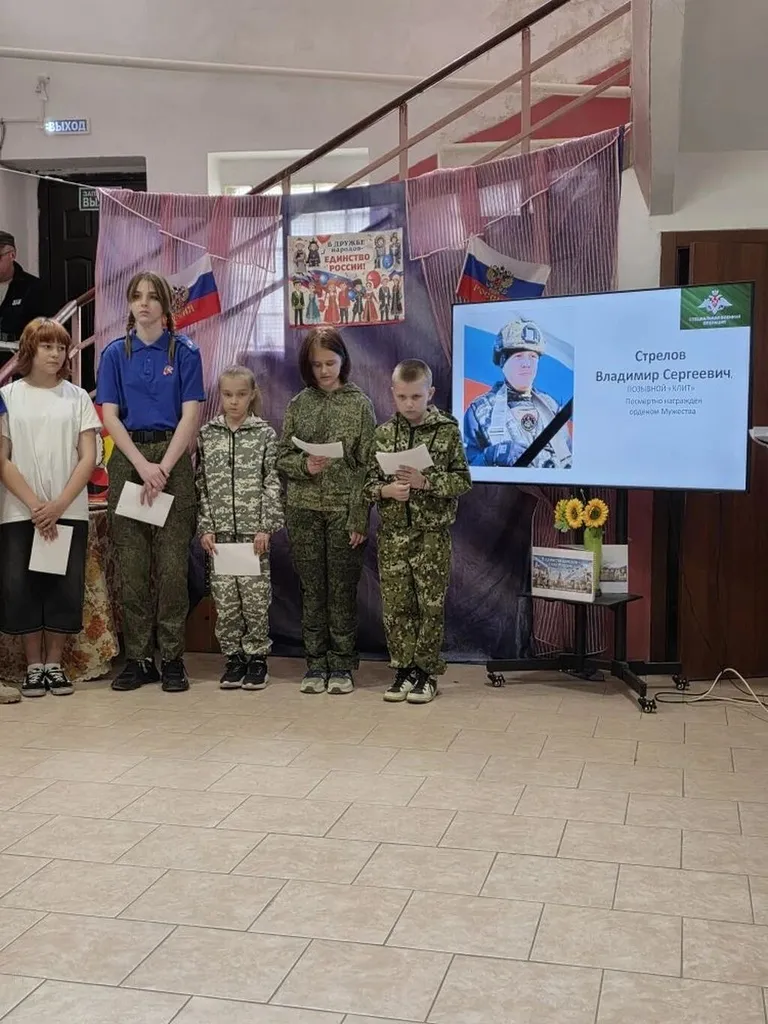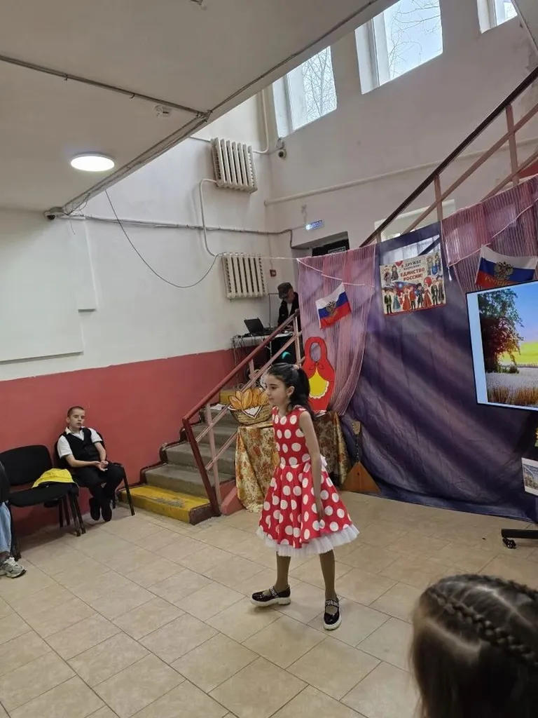 В программе было много интересного: ребята 3 "А" класса, показали интересную постановку про народы России, участники патриотического клуба " Гюрза" рассказали о героях СВО, зрители приняли участие в различных викторинах и конкурсах на тему "Народы России". Закончилось мероприятие преданием вкусного и красивого каравая который преподнесли учащиеся 3 "А" класса в знак дружбы и единения народов, проживающих на территории России.